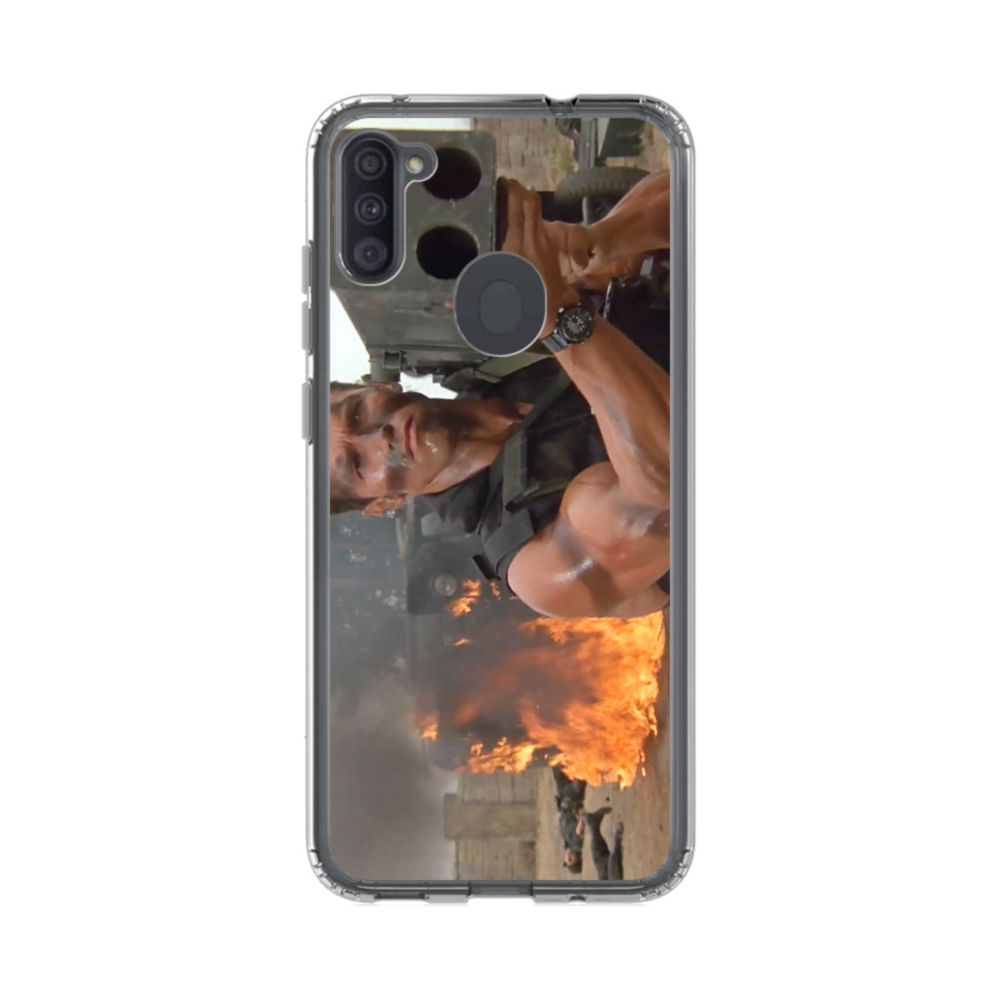 Arnold Schwarzenegger Commando Vertical Samsung Galaxy A11 Clear CaseFunny and fantastic design inspired by the rocket propelled grenade in Commando. Made from shock-absorbing TPU. Encases entire device for a shockproof full protection.