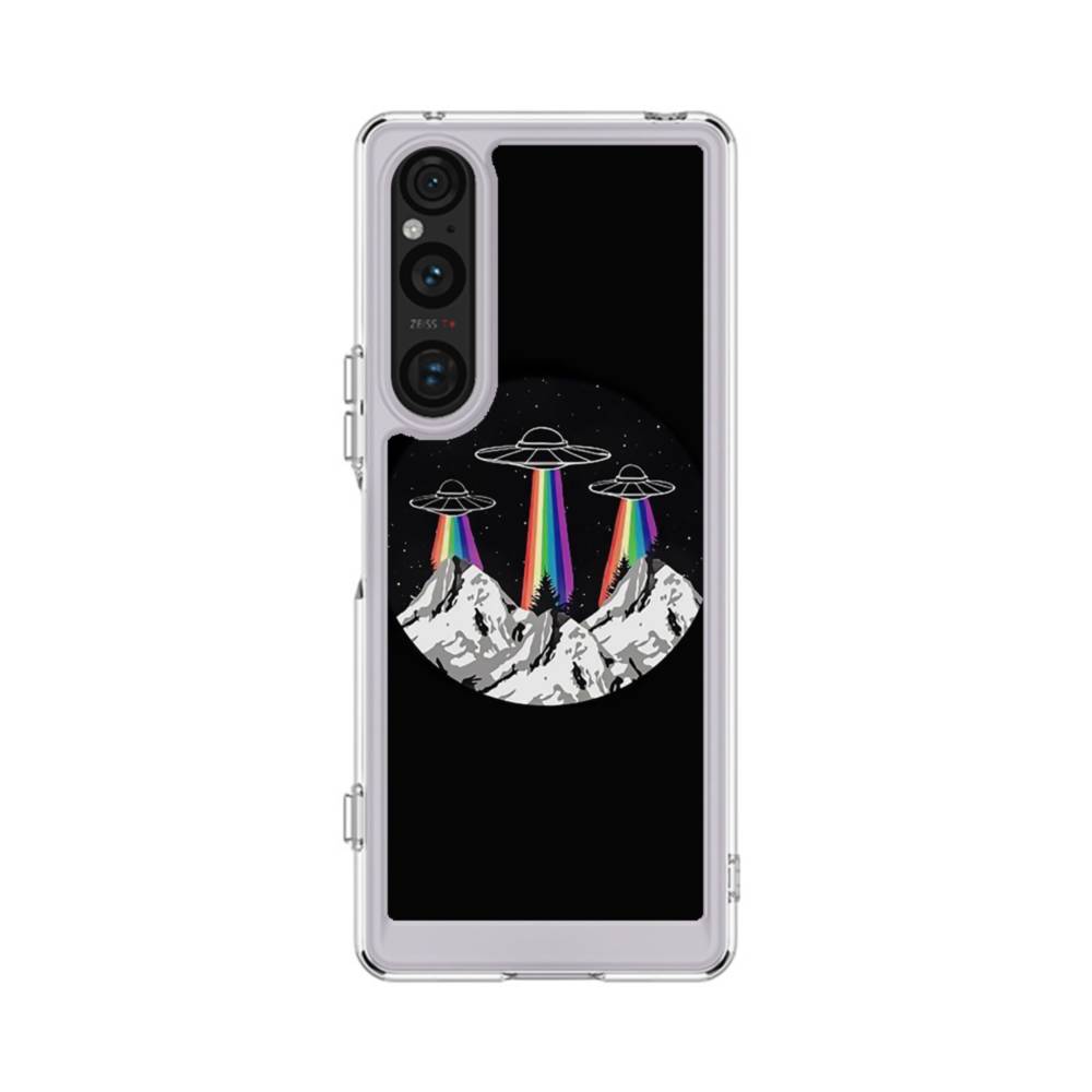 Spaceship And Snow Mountain Sony Xperia 1 V Clear CaseMade from shock-absorbing TPU. Encases entire device for a shockproof full protection.