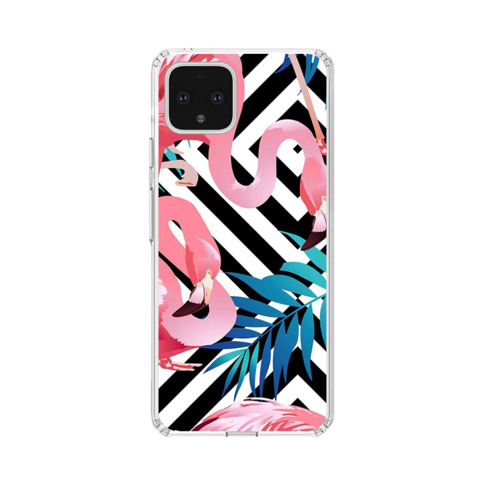 Stripes Background Pink Flamingos Google Pixel 4 XL Clear CaseMade from shock-absorbing TPU. Encases entire device for a shockproof full protection.