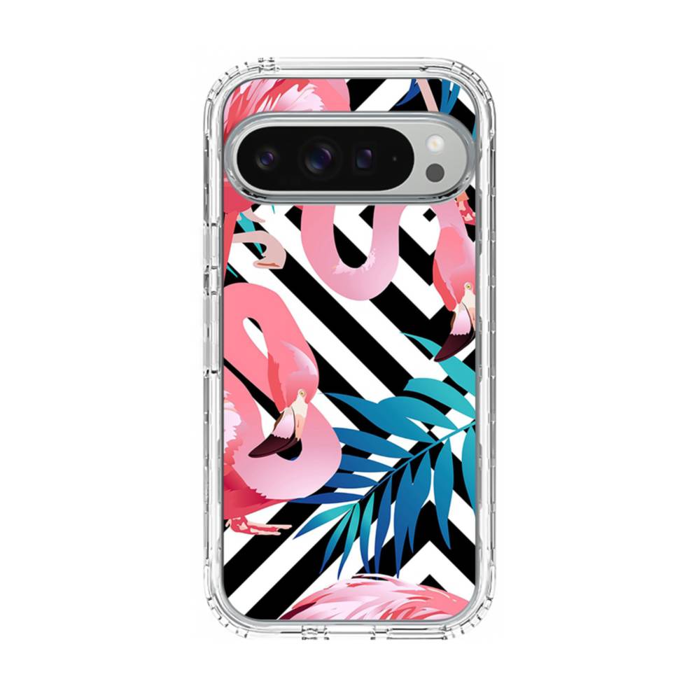 Stripes Background Pink Flamingos Google Pixel 9 Pro XL Clear CaseMade from shock-absorbing TPU. Encases entire device for a shockproof full protection.