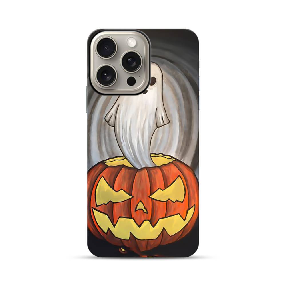 Ghost And Pumpkin iPhone 15 Pro Max Defender CaseGhost is standing on the pumpkin. Our most protective case for iPhone 15 Pro Max. Featuring rubber lining layer, made especially for those always on the go.