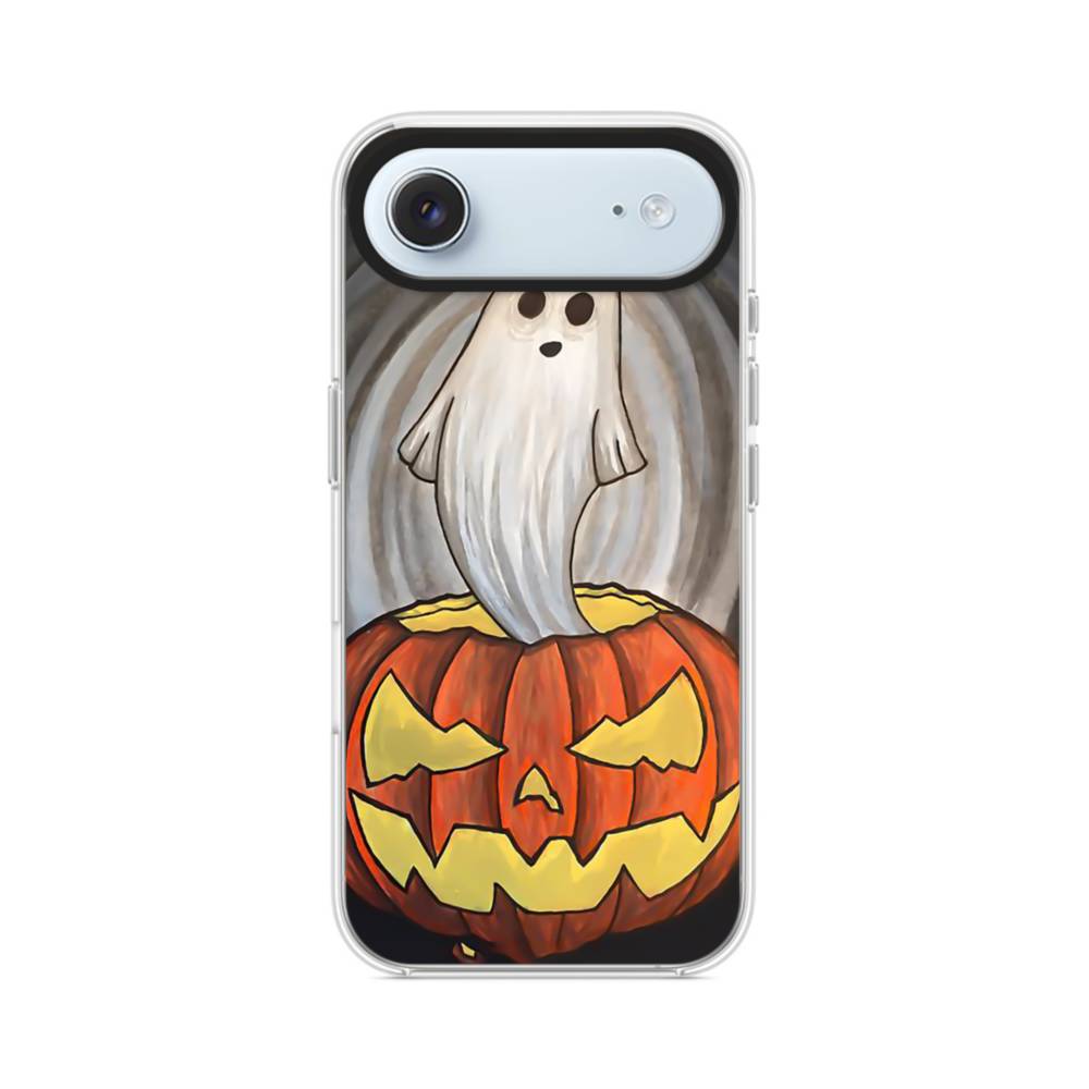 Ghost And Pumpkin iPhone Air Clear CaseGhost is standing on the pumpkin. Made from shock-absorbing TPU. Encases entire device for a shockproof full protection.