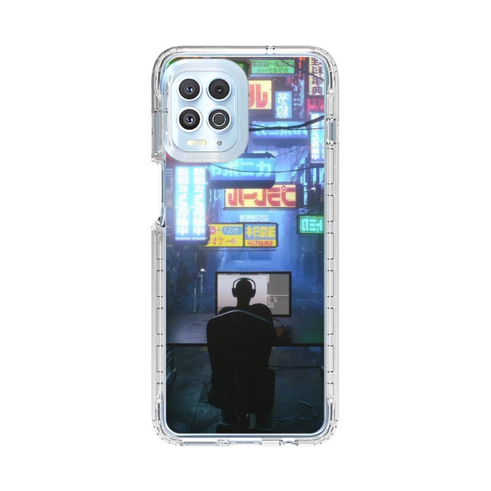 Retro Future Cyberpunk Japanese Neon Light Motorola Moto G100 Clear CaseMade from shock-absorbing TPU. Encases entire device for a shockproof full protection.