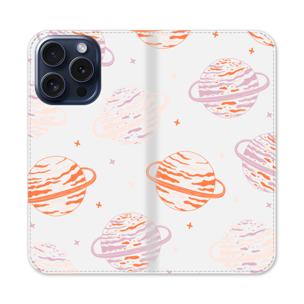 Pink Saturn iPhone 15 Pro Flip Case has front and back covers providing full protection for your iPhone 15 Pro