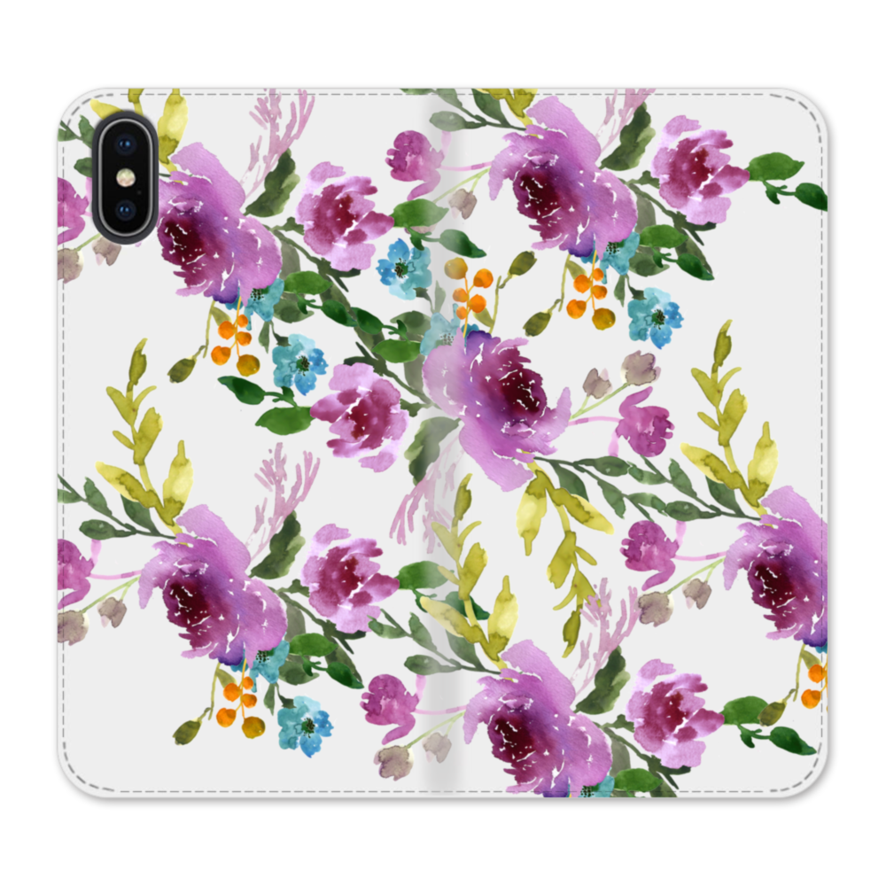 Purple Peony Watercolor Floral Bouquet iPhone X Flip CaseThis Purple Peony Watercolor Floral Bouquet iPhone X Flip Case protects the back and screen of your iPhone X with a card slot on the inside front cover. Print extends to both front and back sides.