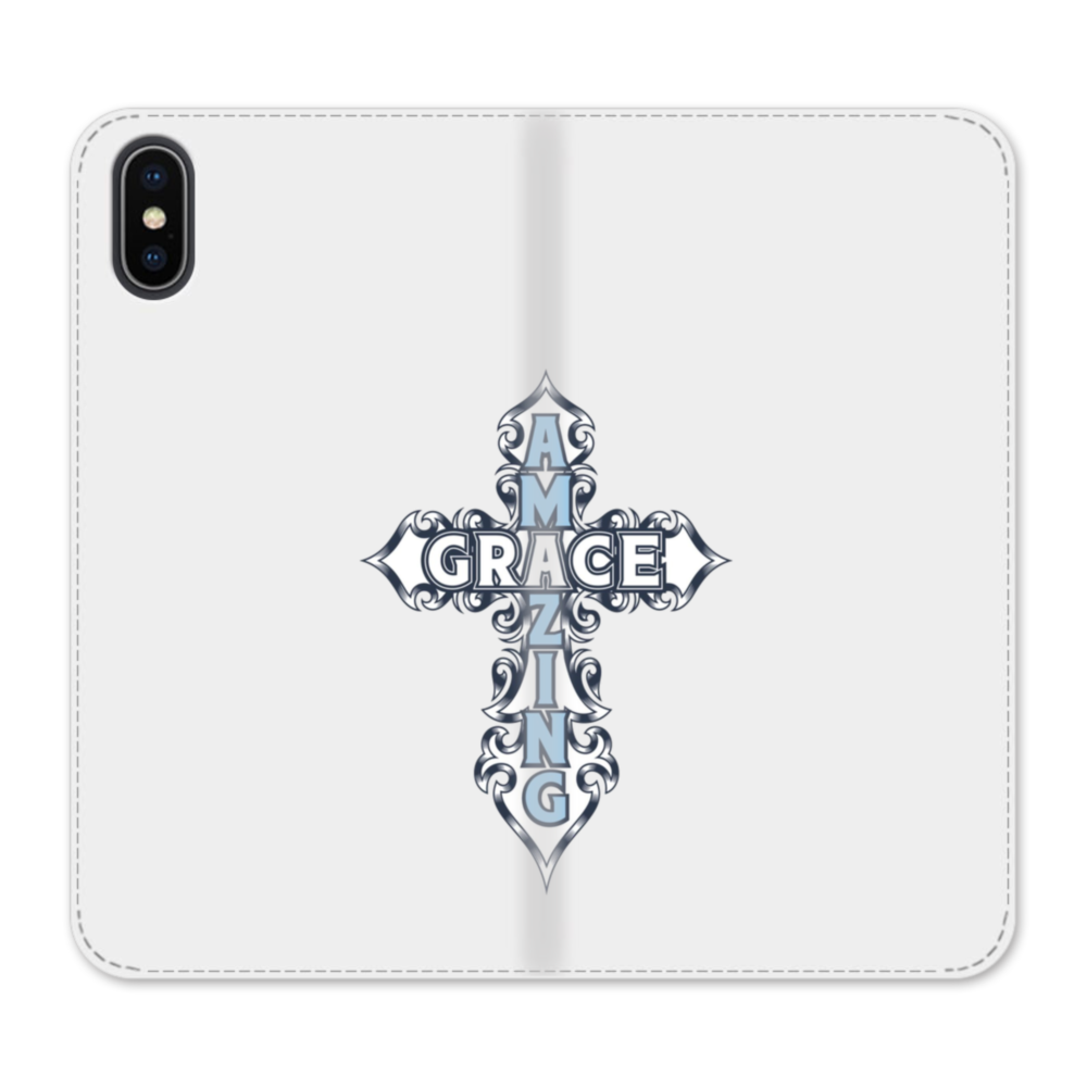 Amazing Grace iPhone XS Flip CaseThis Amazing Grace iPhone XS Flip Case protects the back and screen of your iPhone XS with a card slot on the inside front cover. Print extends to both front and back sides.