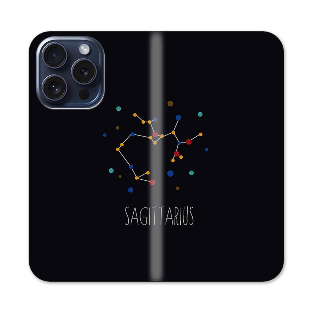 Sagittarius Constellation iPhone 15 Pro Flip Case has front and back covers providing full protection for your iPhone 15 Pro