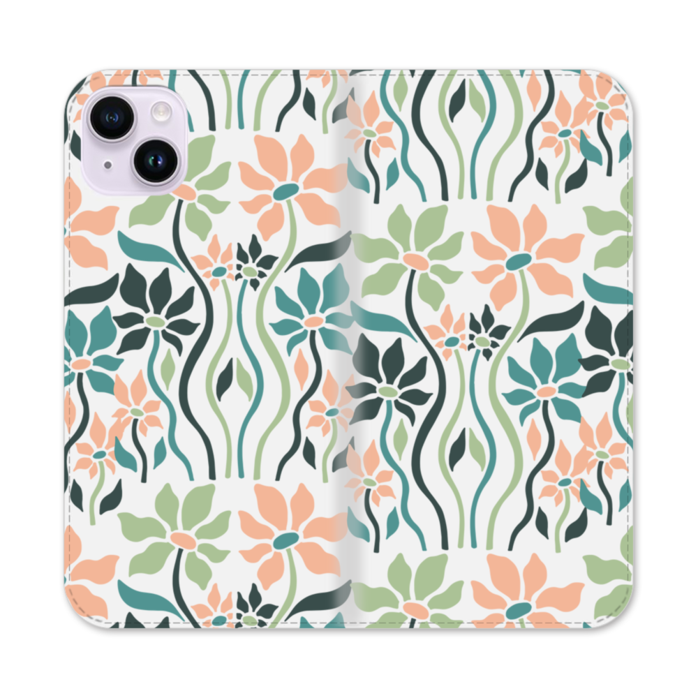 Botanic Flow iPhone 14 Plus Flip CaseThis Botanic Flow iPhone 14 Plus Flip Case protects the back and screen of your iPhone 14 Plus with a card slot on the inside front cover. Print extends to both front and back sides.