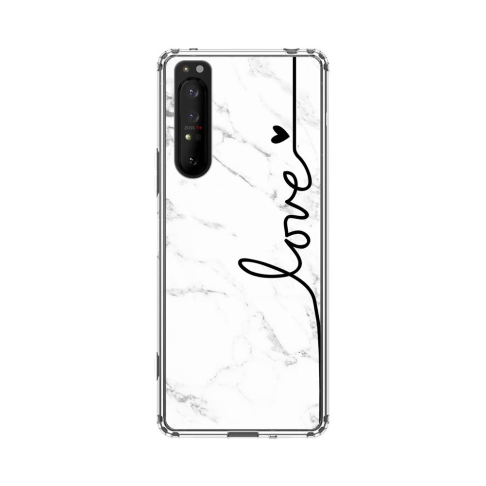 Love Heart White Marble Sony Xperia 1 II Clear CaseMade from shock-absorbing TPU. Encases entire device for a shockproof full protection.