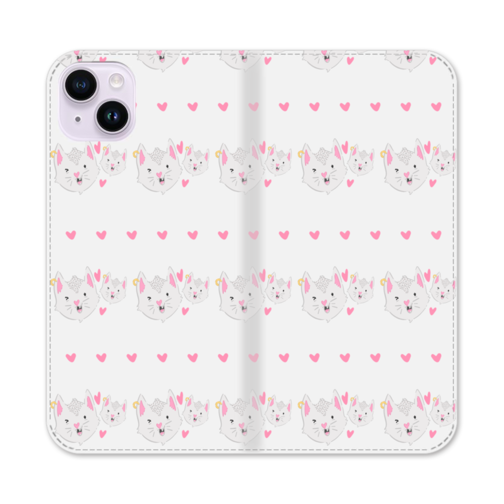 Pink Kitties iPhone 14 Plus Flip CaseThis Pink Kitties iPhone 14 Plus Flip Case protects the back and screen of your iPhone 14 Plus with a card slot on the inside front cover. Print extends to both front and back sides.