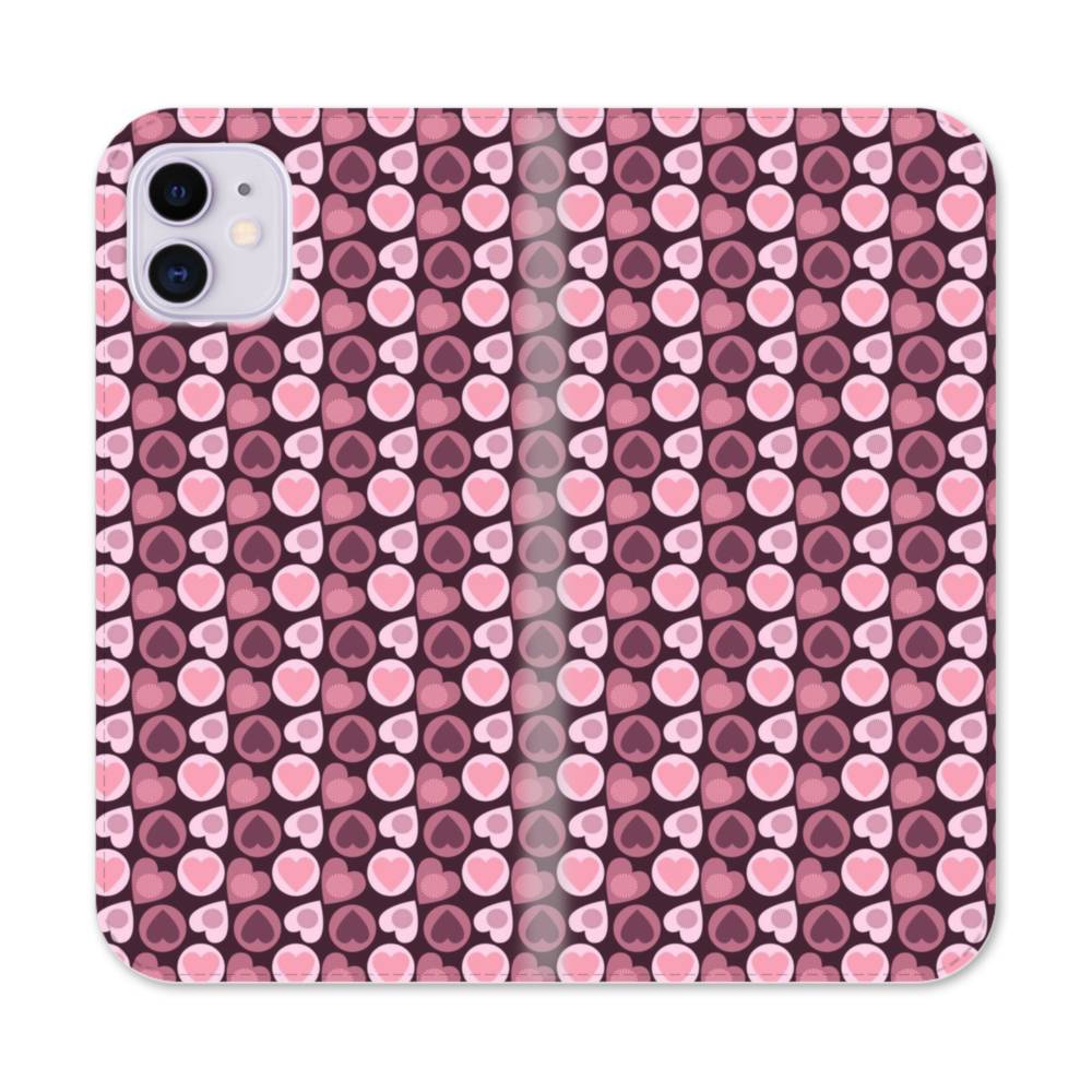 Pink Heart Pattern iPhone 11 Flip CaseThis Pink Heart Pattern iPhone 11 Flip Case protects the back and screen of your iPhone 11 with a card slot on the inside front cover. Print extends to both front and back sides.