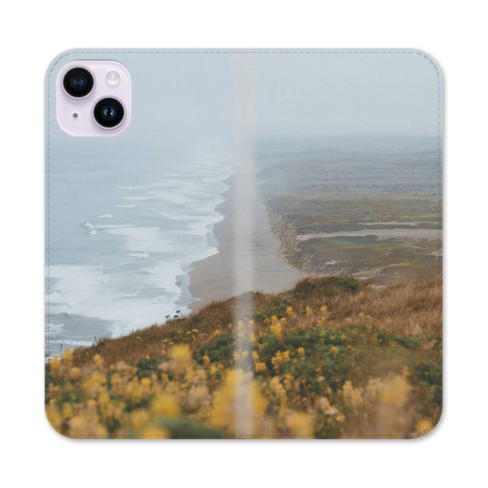 Foggy Coast iPhone 14 Plus Flip Case has front and back covers providing full protection for your iPhone 14 Plus