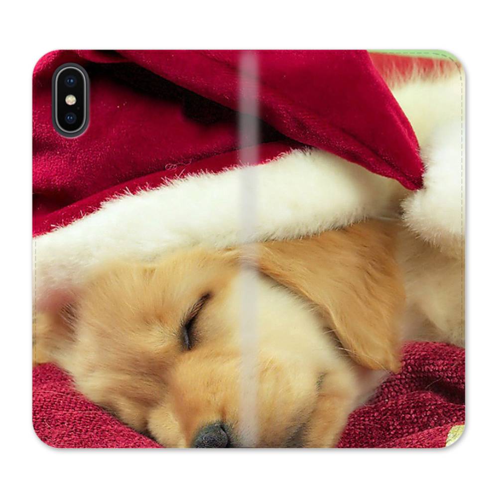 Dog Wearing Santa Hat iPhone XS Flip CaseThis Dog Wearing Santa Hat iPhone XS Flip Case protects the back and screen of your iPhone XS with a card slot on the inside front cover. Print extends to both front and back sides.