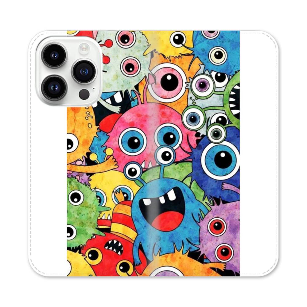 Big Eyes Monsters iPhone 14 Pro Flip CaseThis Big Eyes Monsters iPhone 14 Pro Flip Case protects the back and screen of your iPhone 14 Pro with a card slot on the inside front cover. Print extends to both front and back sides.