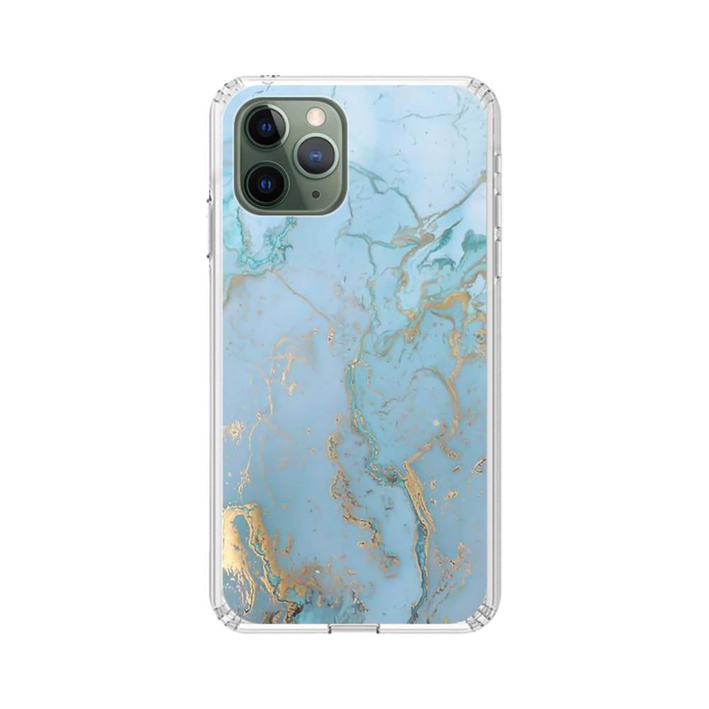 Blue White Gold Marble iPhone 11 Pro Max Clear CaseIt is NOT real marble. Made from shock-absorbing TPU. Encases entire device for a shockproof full protection.