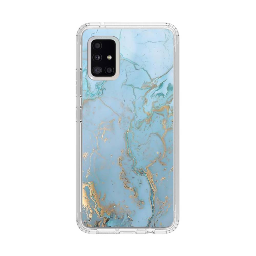 Blue White Gold Marble Samsung Galaxy A51 5G Clear CaseIt is NOT real marble. Made from shock-absorbing TPU. Encases entire device for a shockproof full protection.