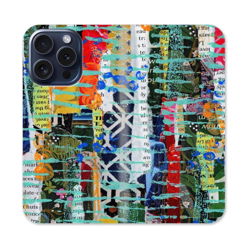 Paper Patchwork iPhone 15 Pro Flip CaseThis Paper Patchwork iPhone 15 Pro Flip Case protects the back and screen of your iPhone 15 Pro with a card slot on the inside front cover. Print extends to both front and back sides.