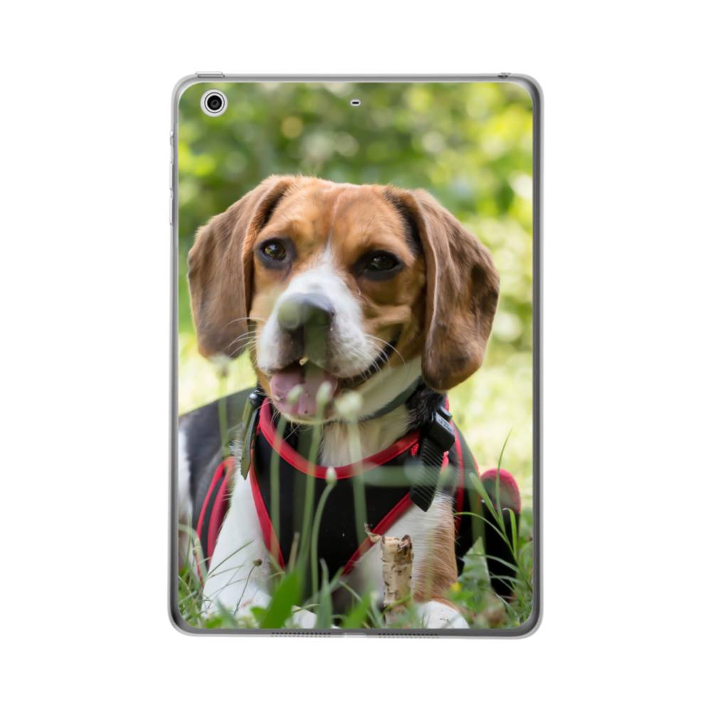 Brown Beagle Apple iPad 10.2 (2020) Clear CaseThe beagle dog is sitting on grass. Made from shock-absorbing TPU. Encases entire device for a shockproof full protection.