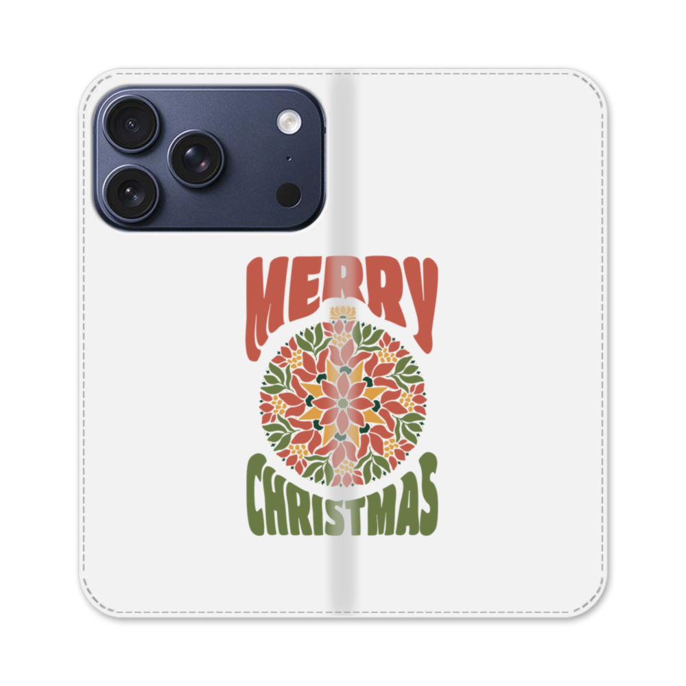 Christmas Flower ball iPhone 17 Pro Flip CaseThis Christmas Flower ball iPhone 17 Pro Flip Case protects the back and screen of your iPhone 17 Pro with a card slot on the inside front cover. Print extends to both front and back sides.