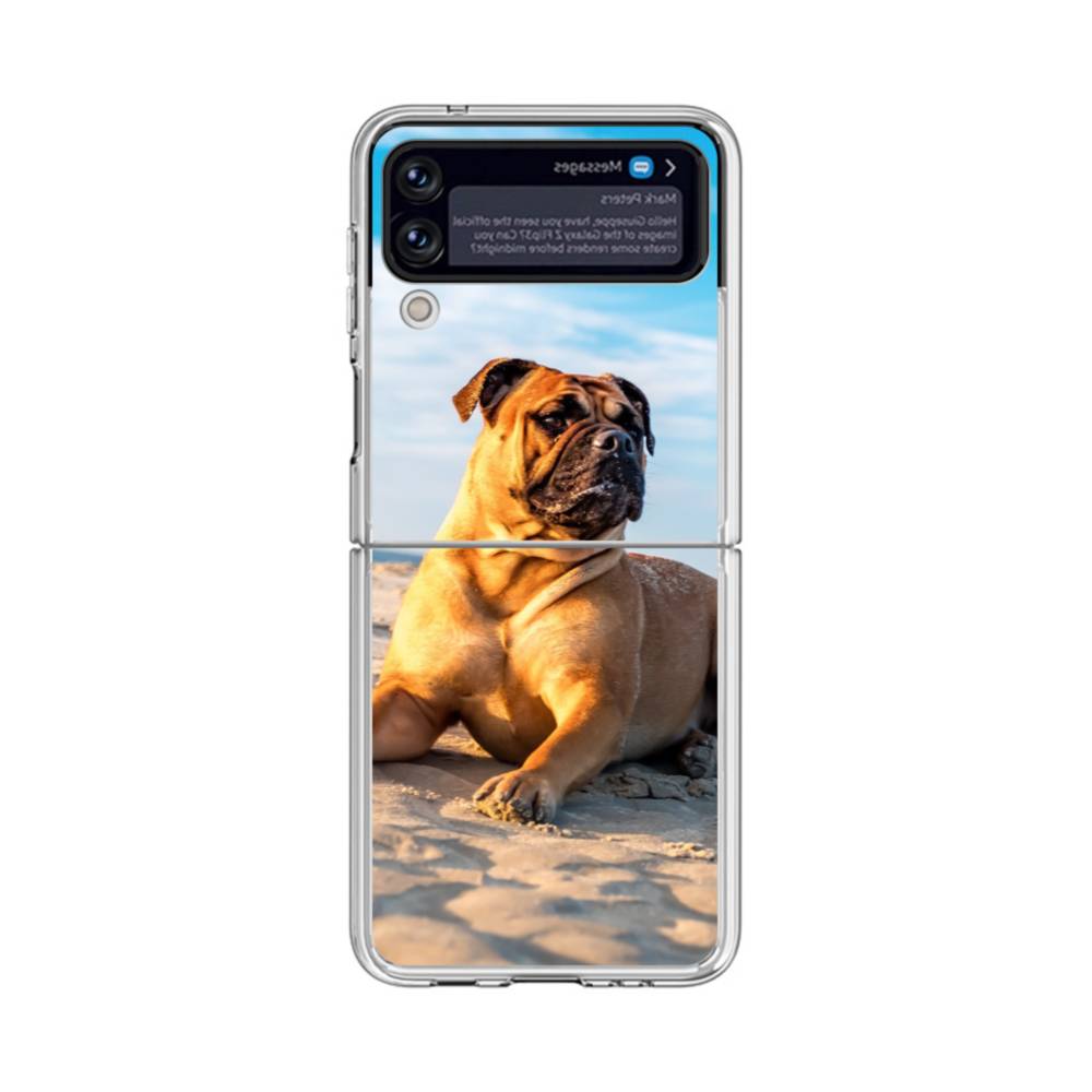 Beach Dog Samsung Galaxy Z Flip 4 Clear CaseA dog is sitting on the beach. Made from shock-absorbing TPU. Encases entire device for a shockproof full protection.