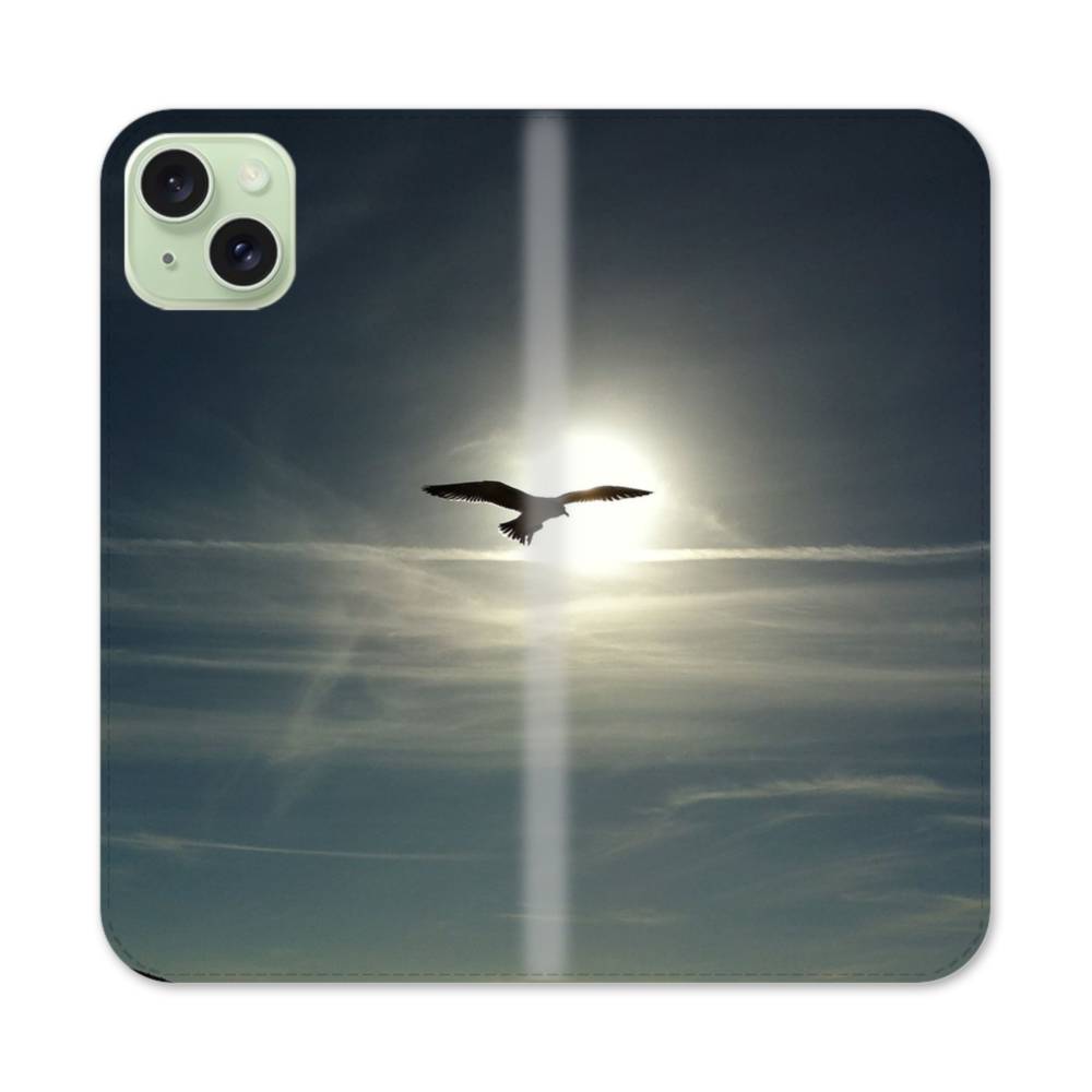 Flying Hawk iPhone 15 Plus Flip CaseThis Flying Hawk iPhone 15 Plus Flip Case protects the back and screen of your iPhone 15 Plus with a card slot on the inside front cover. Print extends to both front and back sides.