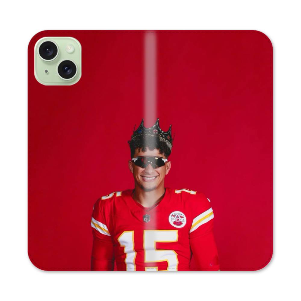 Mahomes King iPhone 15 Plus Flip Case has front and back covers providing full protection for your iPhone 15 Plus