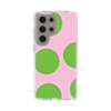 Pink Background Green Points Samsung Galaxy S25 Ultra Clear CaseMade from shock-absorbing TPU. Encases entire device for a shockproof full protection.