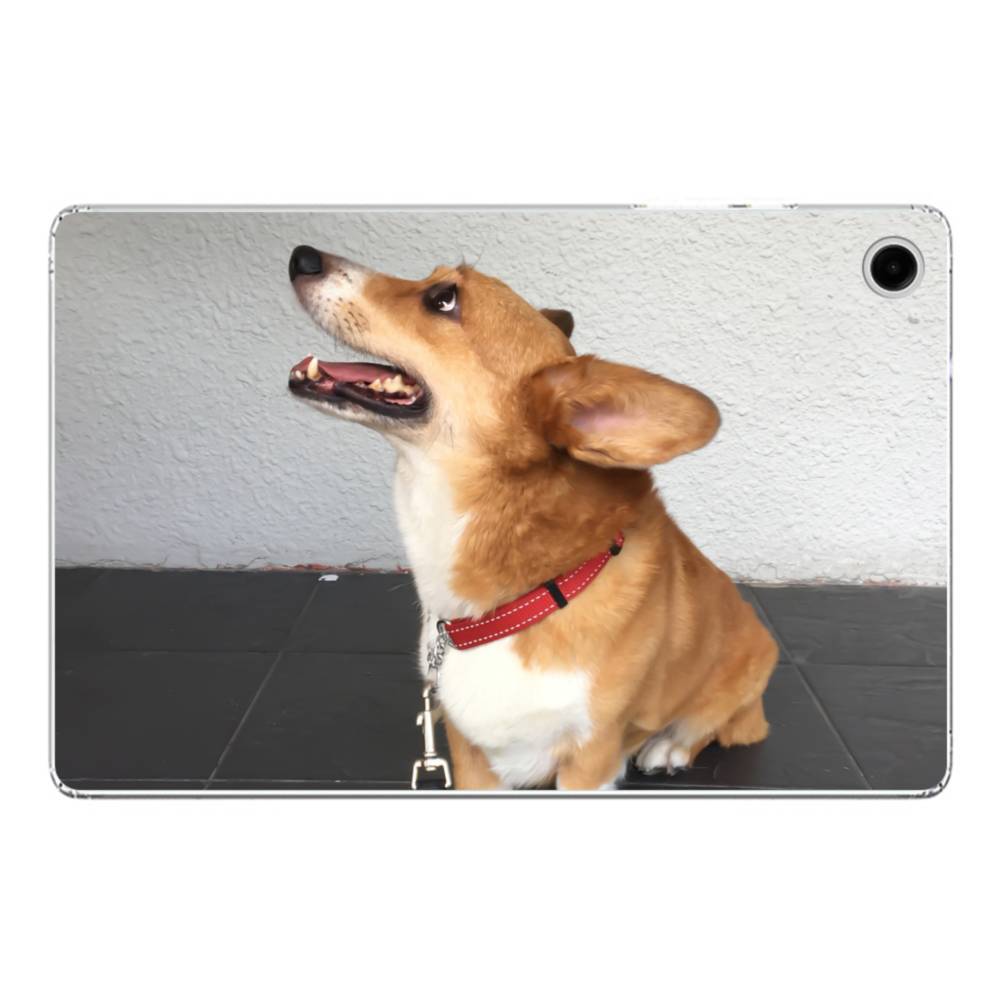 Welsh Corgi Samsung Galaxy Tab A9 Plus Clear CaseA corgi sits on floor. Made from shock-absorbing TPU. Encases entire device for a shockproof full protection.