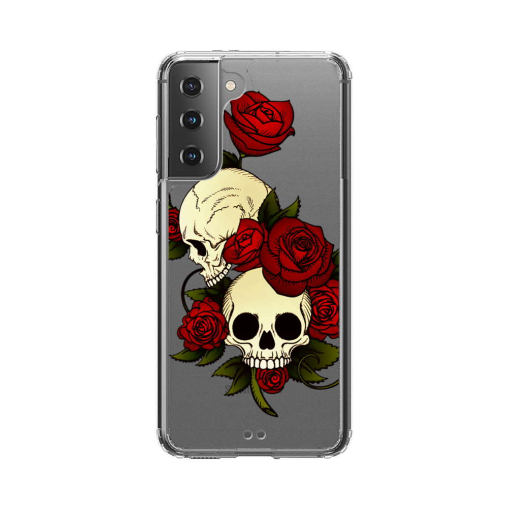 Skulls And Roses Samsung Galaxy S21 Plus Clear CaseMade from shock-absorbing TPU. Encases entire device for a shockproof full protection.
